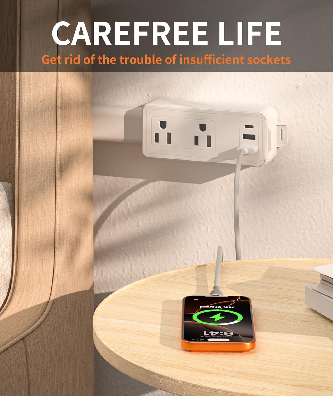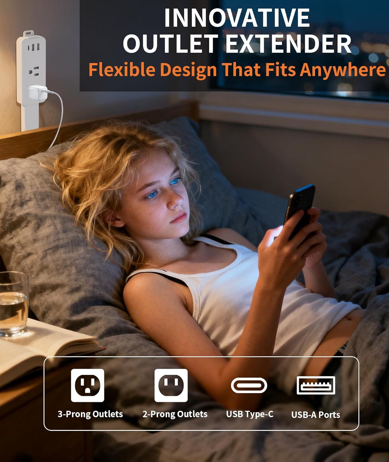 2 Pack Electrical Outlet Extender Stick Features 2 USB-A, USB-C and 2 AC Outlets, Extendable to 6", 15.3", 24.5", 34", for Hard to Reach Spaces Use Behind Couches, Nightstands, Desks, and More