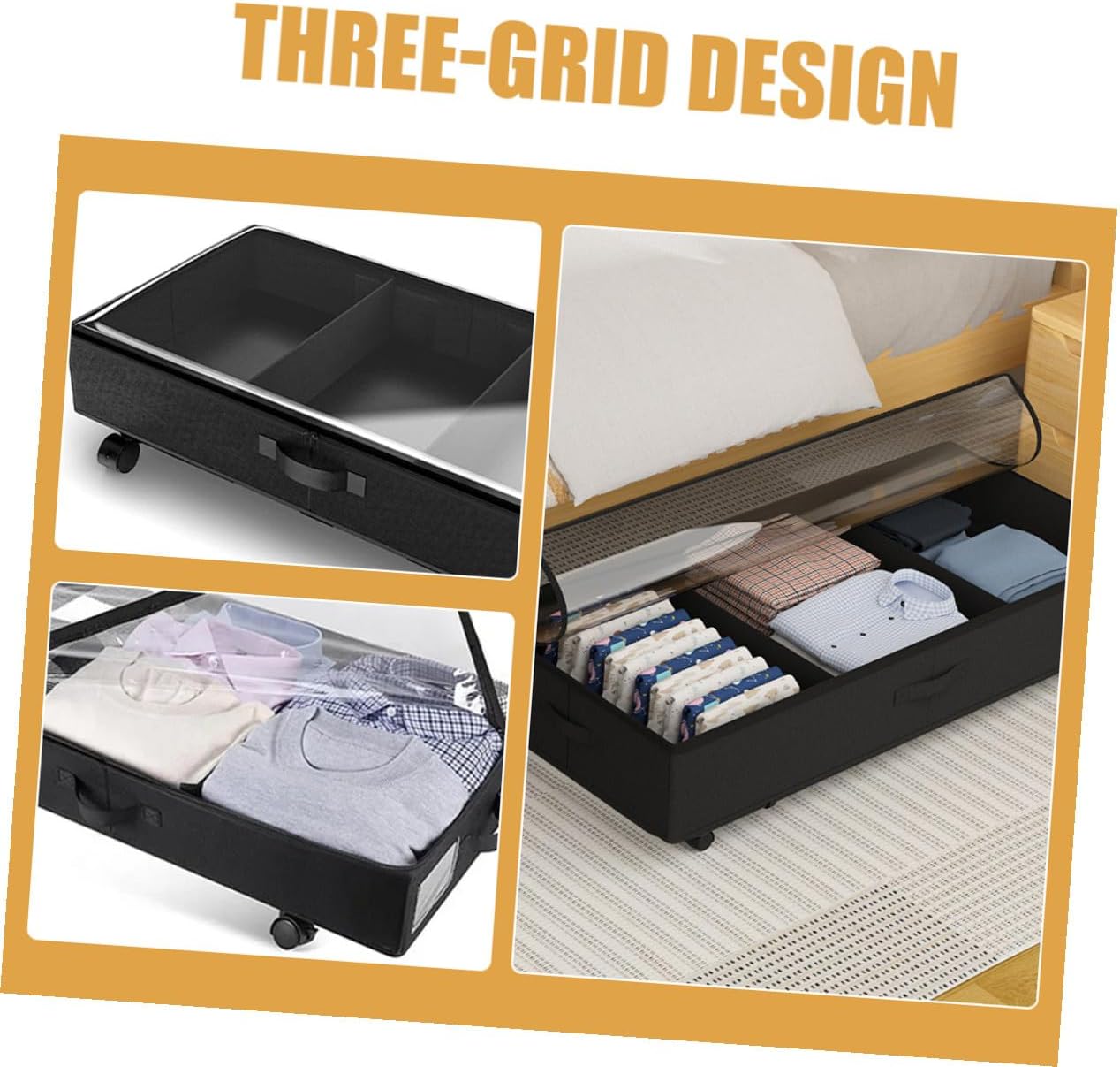 Package List 1 x Under Bed Storage Bag Features -Product Info:Under-bed storage truck -Size:80.00X42.00X16.00cm/31.44X16.51X6.29in -Ample storage capacity: three-grid design allows for storing bed sheets, clothes, , and more underbed storage organizer. -Dustproof organization: prevents dust and dirt, keeping your items clean containers for organizing under bed. -Color:Black - oxford cloth material: convenient and easy to clean for use. -Material:ABS, oxford cloth, iron -Convenient sliding design: easy mobility and access to your stored items with the wheels under-bed storage boxes. -Underbed storage: utilize the space under your bed to increase storage space underbed storage container.Goods Informationstorage under bed with wheels If you are looking for a storage bag for under bed with reliable material, I will tell you that our storage bag will be your choice.underbed storage organizer The under bed storage container is not easy to tear, can keep it for a long time