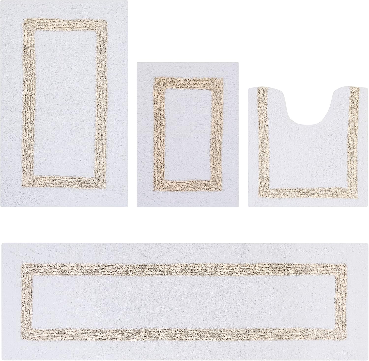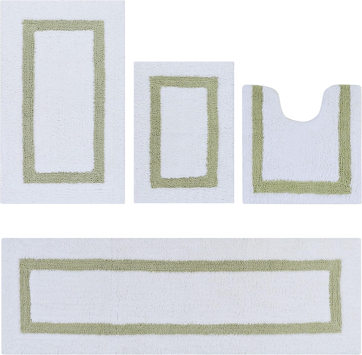 Give your bathroom a contemporary update with the plush reversible bathroom rugs. The striped border rug is incredibly soft to the touch and feels comfortable under the feet. Easy to coordinate with any kind of bathroom décor. This stunning Hotel Collection is made of 100% Cotton Tufted Reversible Bath Mat Rug in Race Track patterns. It is soft, plush, thick, double-sided, and super absorbent. This collection of bath rugs comes in 9 colors.