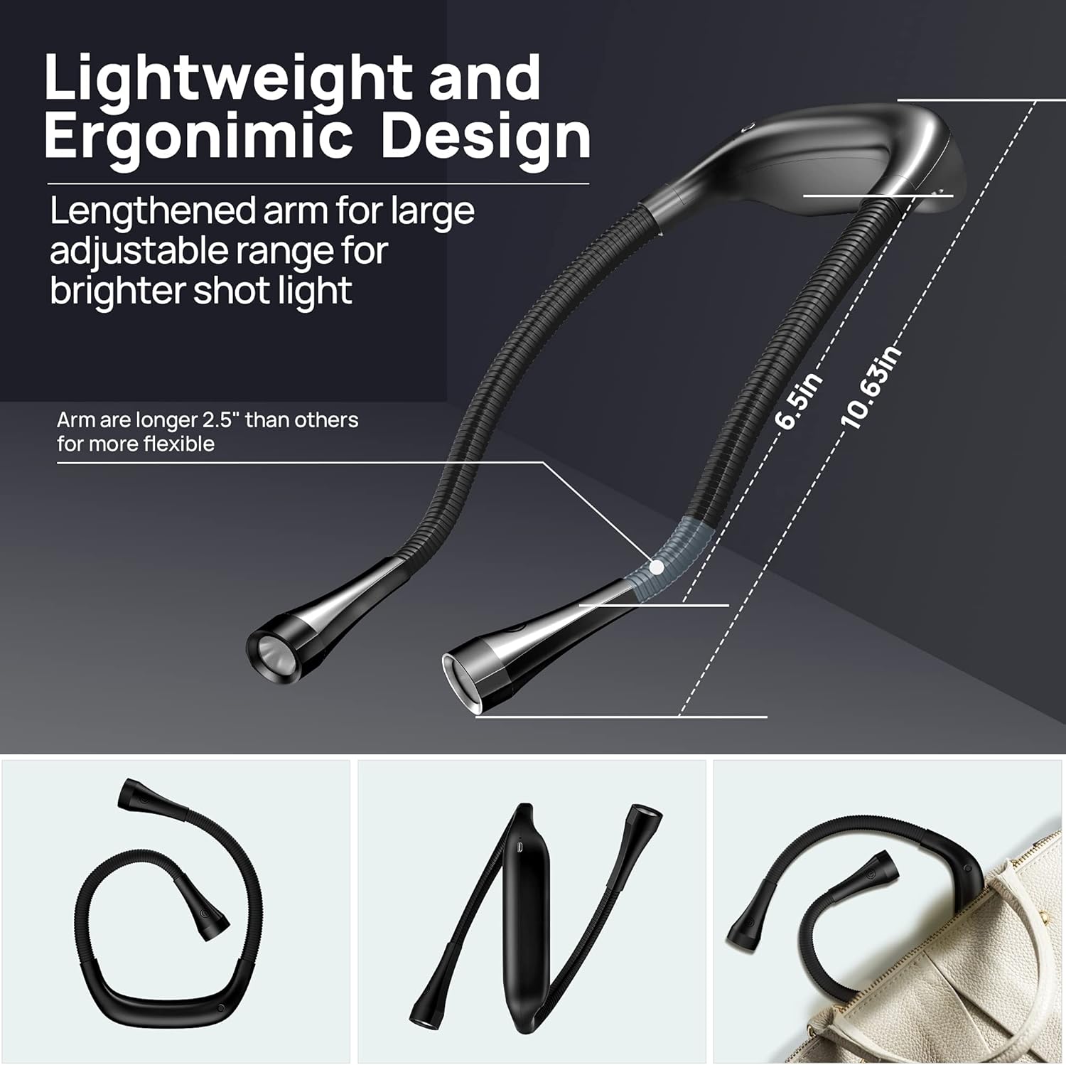 | Additional Features | ✦3 Colors, ✦6 Brightness Levels, ✦Ergonomic Design, ✦Eye-Caring, ✦Flexible Arms, ✦High quality Materials, ✦Light-weight, ✦Long-lasting, ✦Portable, ✦Rechargeable, ✦Touch Control |