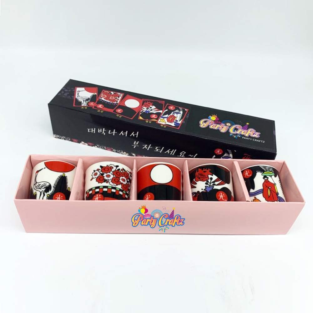 👰Product details 5 PCS Shot Soju Glasses comes with Korean Traditional Flower Card Game It is a 'must have' item for one who loves to drink 5 glasses in a box It means health, good luck, wealth, peace, and success Korean Traditional Flower Card Game 5 Glasses Set Soju is an alcohol similar to Japanese sake Normally made from rice which many Korean brands use different sources of starch (potato, sweet potato, wheat, barley ...) light colored alcohol content varies between 17 and 40%