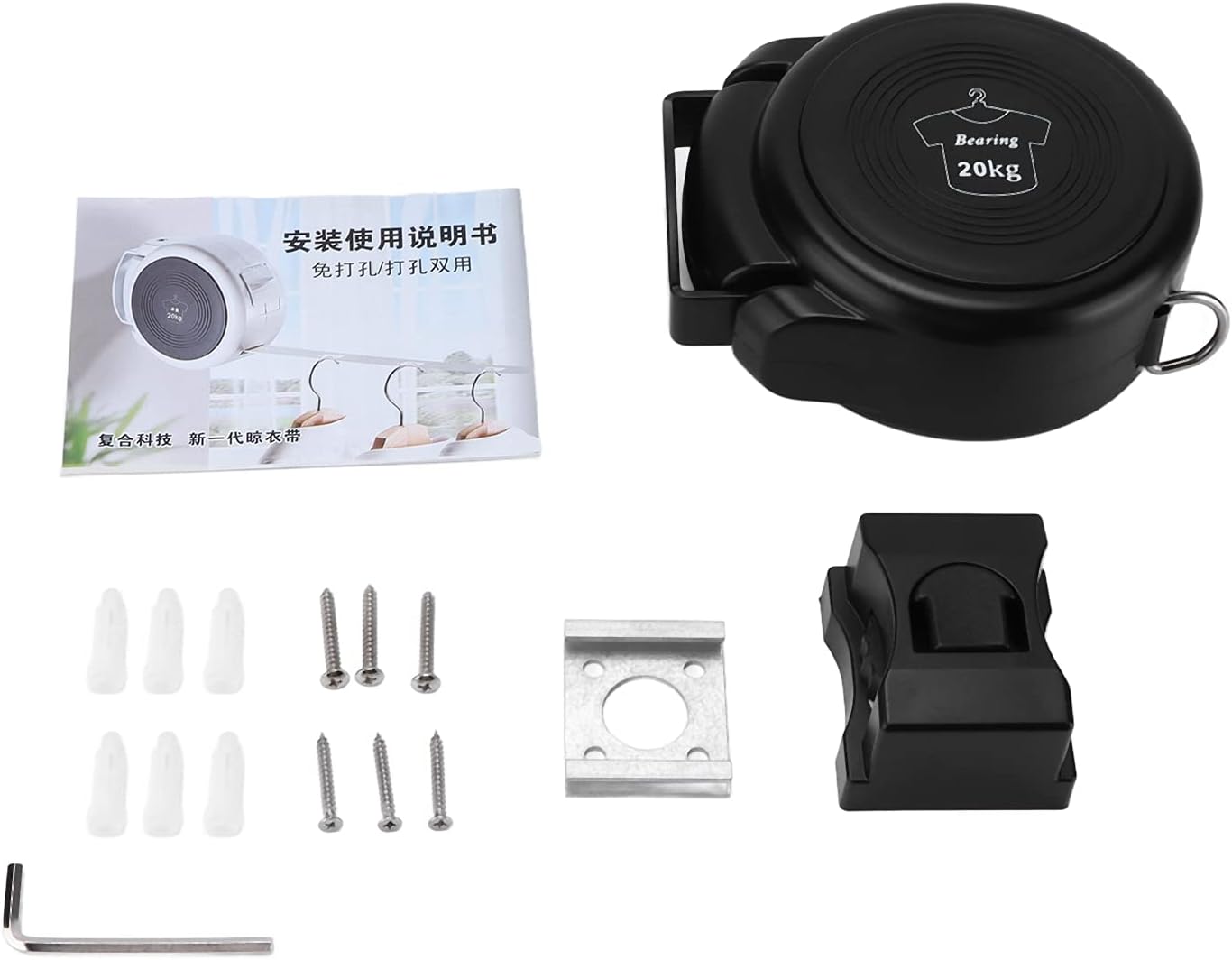 Description:Retractable adjustable clothesline provides 4.2 meters of customizable drying space with a 20kg load capacity that maintains stability during full-load operation. Featuring 180-degree folding capability and lightweight construction, compact indoor clothesline enables tool-free installation while optimizing storage efficiency in limited spaces. With integrated deceleration technology, portable clothes drying tools ensure controlled retraction at safe speeds while being constructed from industrial-grade materials for long-term reliability. This system combines heavy-duty functionality with user-centered design for effective laundry management in apartments, dormitories, and temporary living spaces.Item Type: Retractable ClotheslineMaterial: Plastic, Space Aluminum, BeltBelt Size: Approx. 4.2m / 4.6ydWeight: Approx. 798g / 28.1ozSpecification: 9028B Black Round ClotheslineBearing Weight: Approx. 20kg / 44.1lbPackage List:6 x Screws6 x Expansion Screws1 x Small Wrench1 x Host (Including Base)1 x Notch1 x SnapNote:1. Nail free glue does not apply to: painted wall, plaster wall, cement wall, wallpaper wall2. Nail free glue is suitable for: smooth ceramic tile, smooth marble, smooth glass, smooth metal, solid wood wall, frosted glass, mosaic wall, concave‑convex wall3. Please kindly note that this product needs to be assembled by yourself.