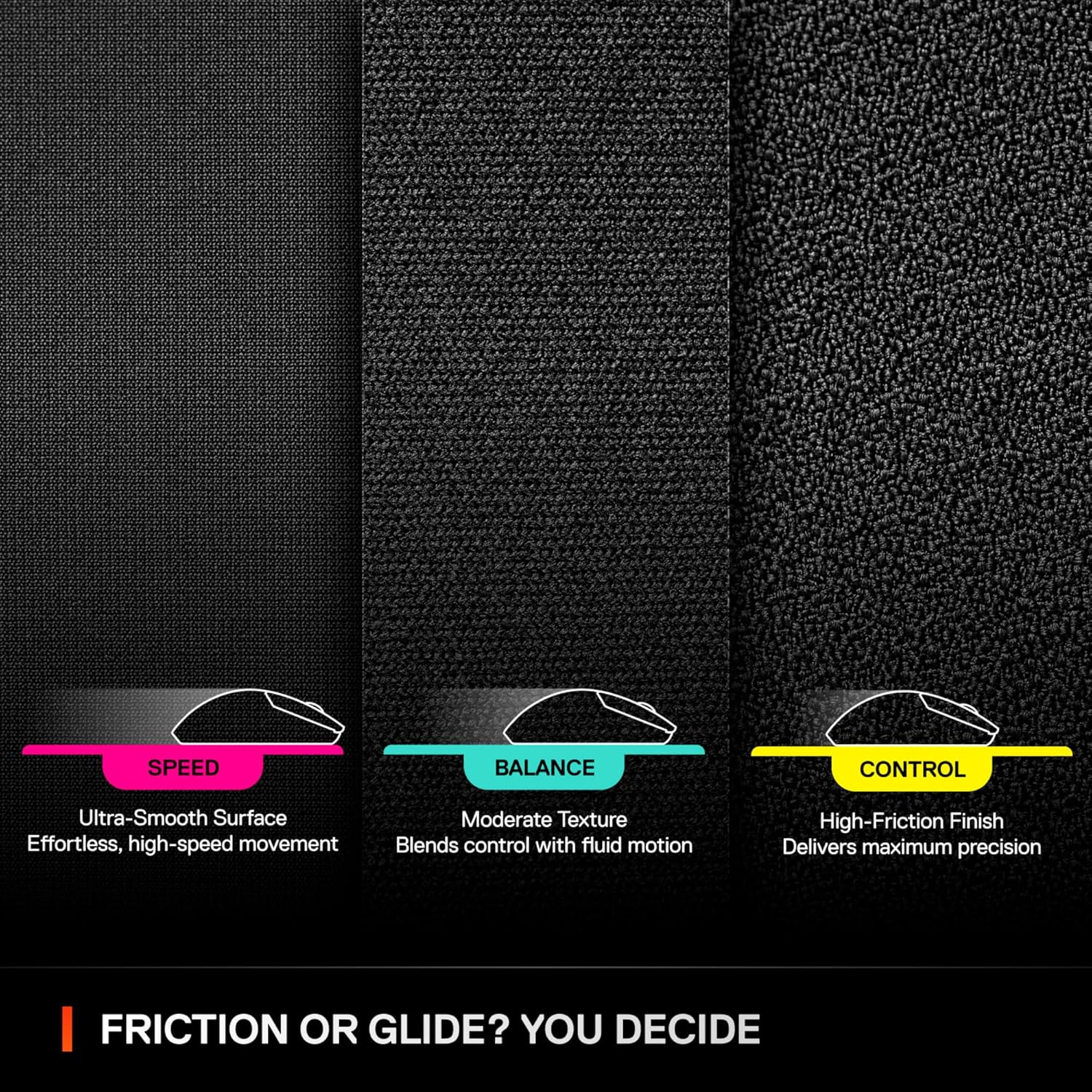 From the first premium mousepad collection, built on legacy of esports victories, QcK Performance - Speed is an ultra-smooth surface designed for rapid movement and split-second responsiveness. At an ideal thickness of 3.5 mm, QcK Speed is premium-crafted. High-grade neoprene foam creates a stable foundation for your mouse, while low-profile stitched edges enhance durability and prevent frayed edges. Built on decades of esports dominance and developed in consultation with top players, this is a cutting-edge gaming mousepad designed for victory. Choose between two sizes, XL (900 mm x 400 mm) to encompass your battlestation in stylish black, or L (490 mm x 420 mm), reserved just for your mouse. Find your ideal mousepad in the QcK Performance Series, among Speed, Balance, and Control variants.
