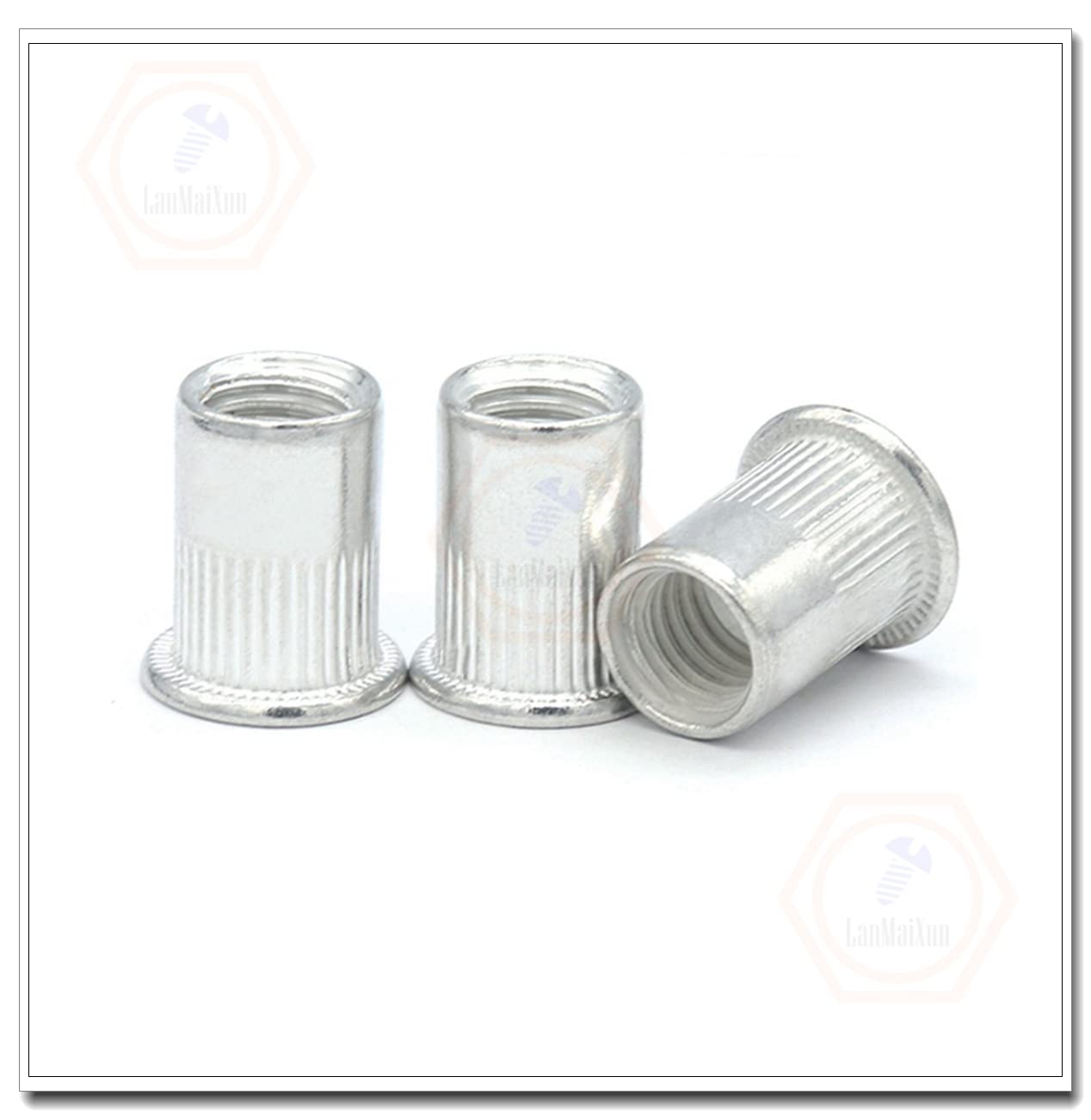 ★ This Nutsert has a large flange to provide increased strength in punched and drilled holes. Knurled body provides a higher resistance to spin out when installed in soft materials. ★ A Rivet Nut fastener is a tubular rivet with internal threads. It can be installed in seconds form one side of the work. Once installed, no finishing work is required on the Rivet Nut fastener. The added benefit of not only being a dependable fastener, they are ready to use with clean threads available for screw attachments.Blind thinsheet materials that are too thin for a tapped thread. Blind Rivet Nuts also areused when an application has little or no access to the backside as they can be installed from the front side of the work piece. ★ A hand or power tool pull-up stud engages the threads of the RIVET NUT fastener and exerts a pull, causing the shank to expand tightly against the material being fastened. This step upsetting the RIVET NUT fastener. ★ The specific steps as following: Step 1: Put on the rivet nut Step 2: Spin on the rivet nut Step 3: Insert into the hole Step 4: Press and upset the rivet nut, withdraw the gun Step 5: Install the svrew bolt