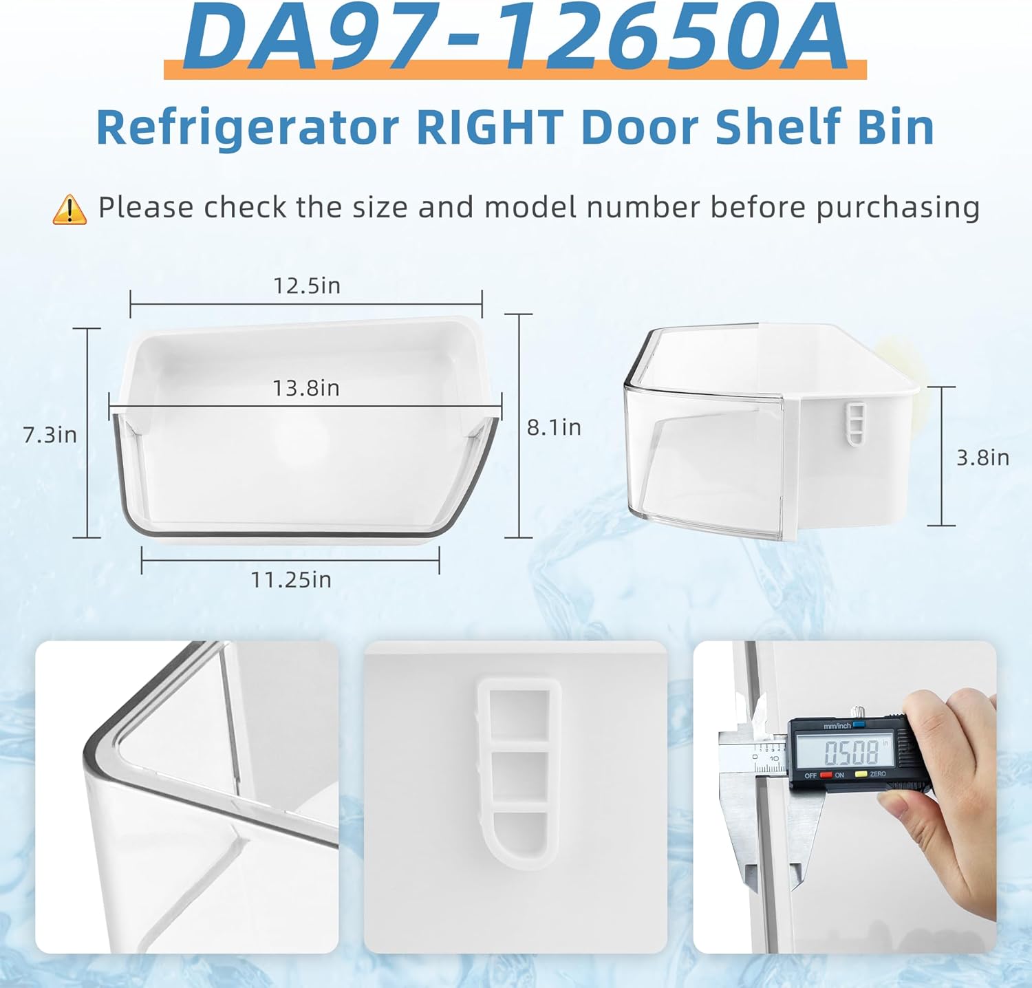 | Warranty Description | Our DA97-12650A DA97-12657A door bin right replacement is made of thicker material for durability. Regardless of the refrigerator door shelves replacement problems, we provide 2 years of free replacements, please rest assured to buy |