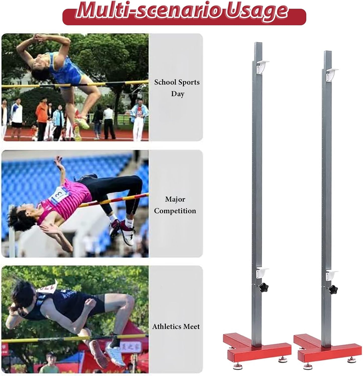 ❉ Our training high jump stands is suitable for student training, school team competitions, and professional events.Ideal for all high jump needs from beginner to advanced levels.❉ Package Include:- 1 x Pair Posts (Does not include crossbars)❉ Specifications:- Quantity: 1 Pair- Scale: Metric (cm)- Posts Material: Aluminum Alloy- Base Material: Aluminum Alloy- Height adjustable: Between 50–250cm / 1.6-8.2ft❉ Feature:- Simple construction for easy relocation.- Easy to install, includes all mounting hardware.- Heavy-duty base provides stability and prevents tipping.- Height-adjustable to accommodate various training requirements.- Made of durable aluminum and withstands weather exposure for long-lasting use.❉ Note:- There may be some 1-2 cm errors in manual measurement, please refer to the actual product.- Due to differences in some monitors and lighting reasons, there may be a slight colour difference between pictures and objects.