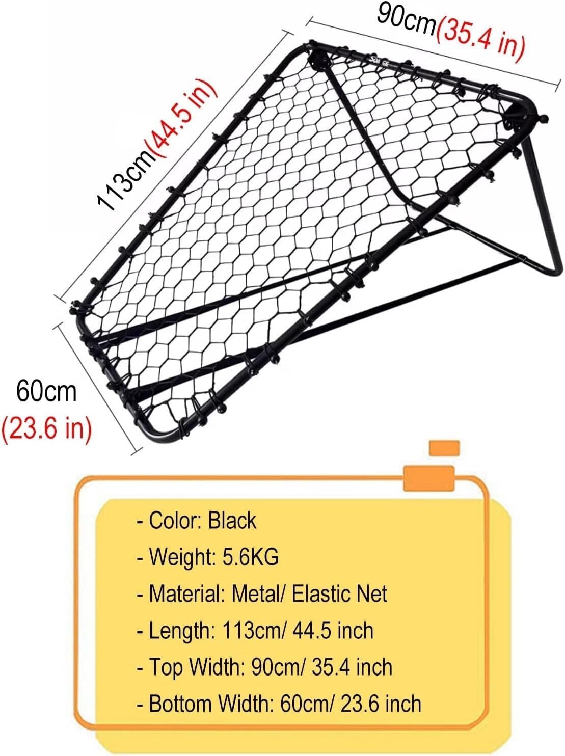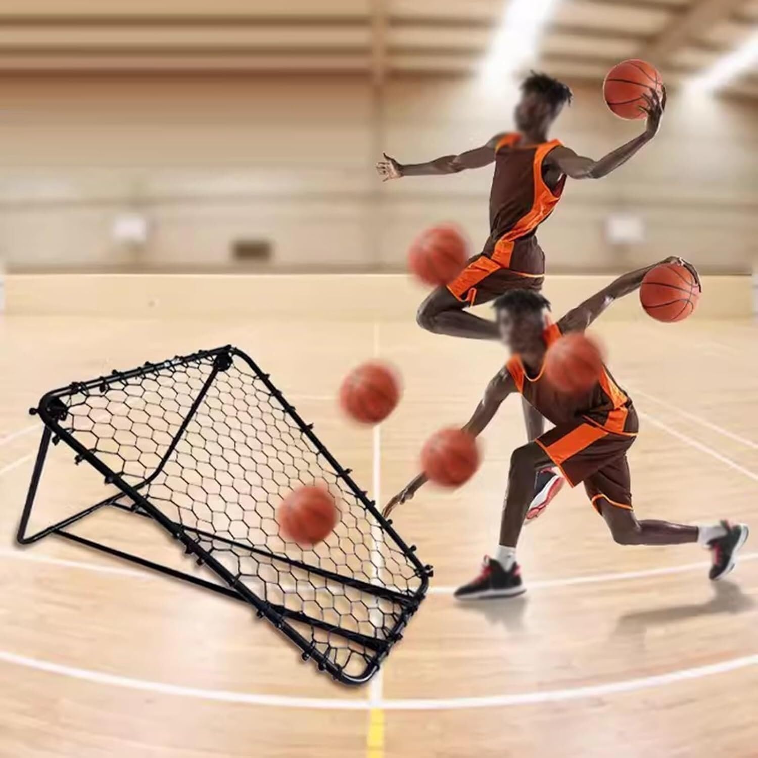 Time-saving & Keep Shooting- The basketball rebounder is designed for practice efficiency and technique improvement. The basketball hoop return system will return the ball to shooter, help the shooter maintain the shooting state, and adjust technical actions. It's best to use two balls at the same time, which will make the training effect more obvious. Perfect for basketball enthusiasts.? Specifications:- Material: Metal/ Elastic Net- Length: 113cm/ 44.5 inch- Top Width: 90cm/ 35.4 inch- Bottom Width: 60cm/ 23.6 inch? Features: - EZ up and down and carry.- Perfect for basketball enthusiasts.- Train any shot or play you can imagine.- Eliminating the hassle of chasing the shot. - That finds it really good for throwing drills.- This for students to work on hand eye coordination.- The return attachment can improve your shooting skills.- It offers a variety of different angles due to the adjustability.- Suitable for teams, schools, coaches and serious backyard training.- Perfect as a gift for kids, boys and girls who love the sport of basketball. ? Package Included:- 1x Basketball Rebounder Net ? Note: - Manual measurement products may have dimensions of a few centimeters of difference, please understand.- There may be some differences between the image and the product due to display and lighting reasons, please refer to the actual product.