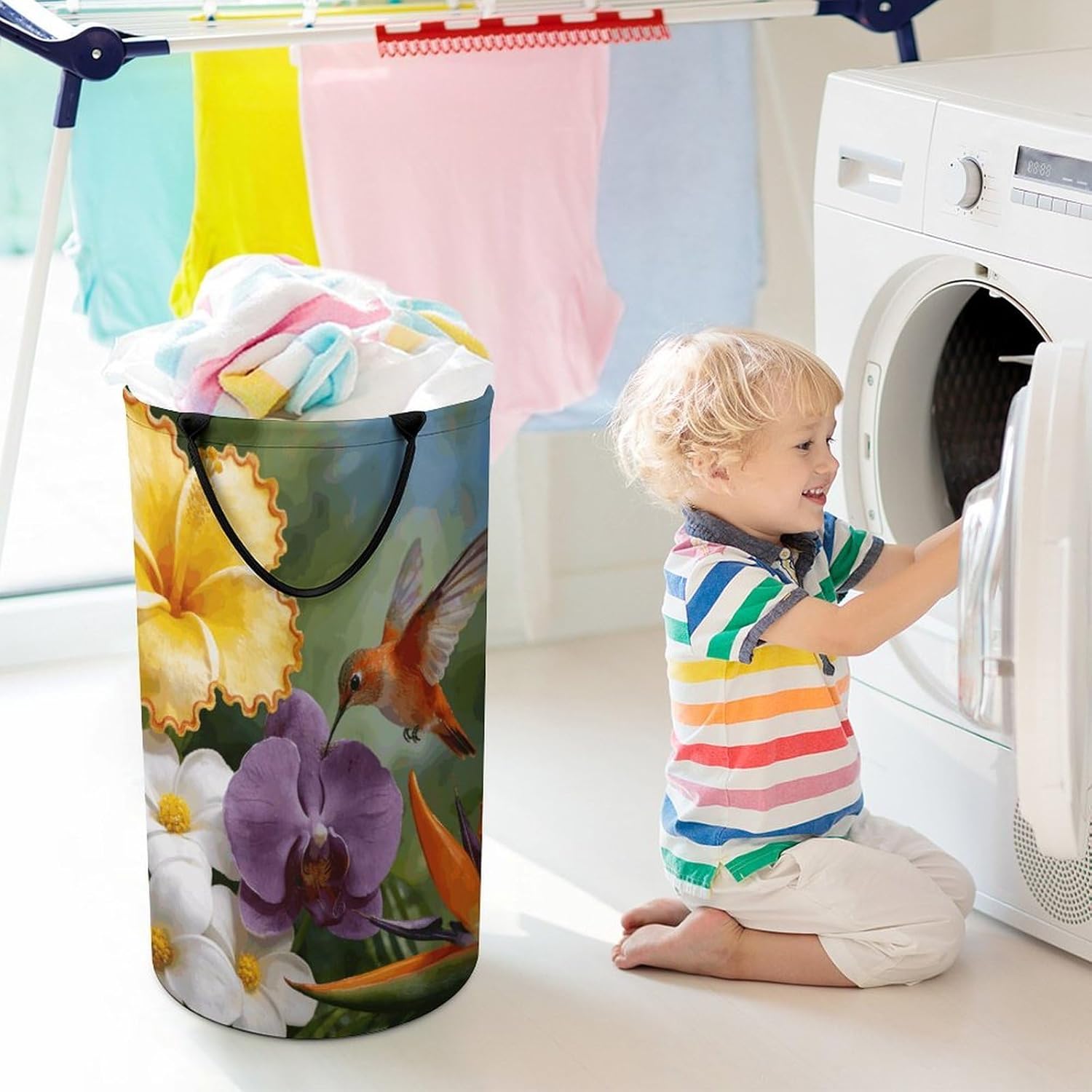 The pattern of the Spring Whispers hamper is printed with exquisite patterns, which makes the product more attractive.Chic design allows it to be used in the living room to hold throw blanket, pillows, and reading materials, as well as in the bathroom for towels, or as a laundry hamper.The laundry hamper adopted collapsible design, equipped with handles. It is lightweight and portable for using, storing, and moving conveniently.Spring Whispers Clothes hamper is suitable to store dirty clothes washing, place in the room to store toys, and other household goods, keep the house clean and tidy. Perfect laundry hamper for home, office, closet organizer, bedroom, bathroom, college dorm, etc.Gets out of your way when you need it to. This storage basket or laundry hamper is a good gift, which not only meets everyday storage needs but also carries deep care and love, a perfect way to turn thoughtfulness into warmth.