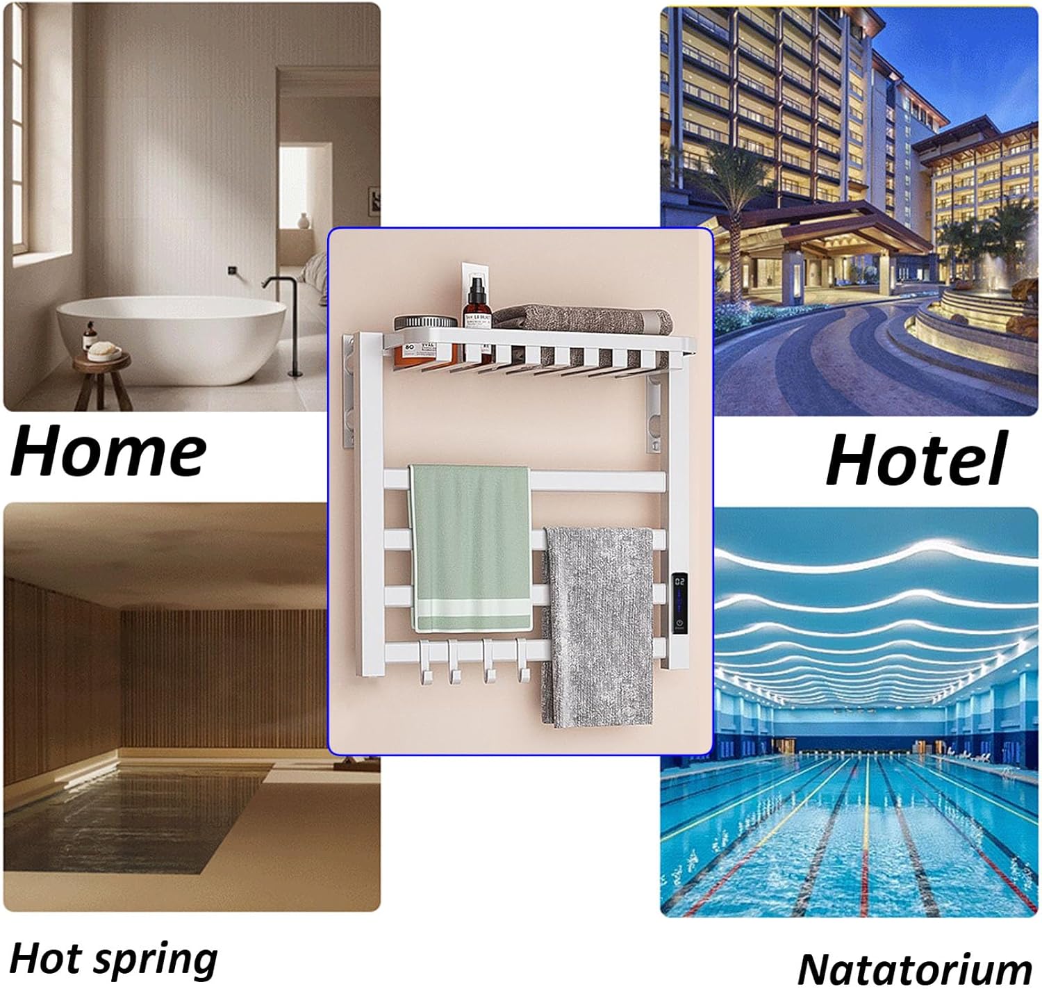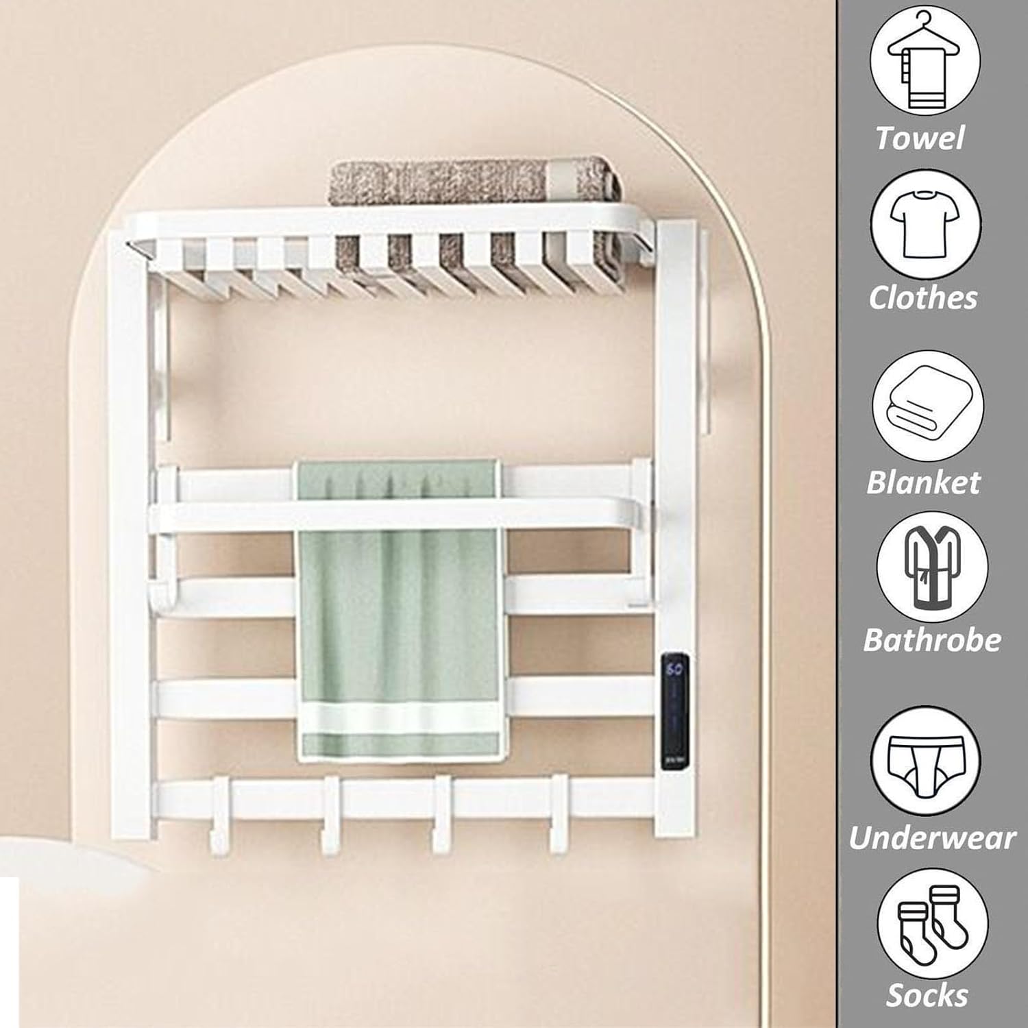 Transform your daily routine with our Smart Electric Towel Rack, designed to elevate your bathroom experience. This heated towel rack not only dries and warms your towels but also serves as a stylish storage solution, perfectly suitable for various settings such as bathrooms, kitchens, balconies, toilets, swimming pools, and hotels. Its sleek design in elegant white or gray seamlessly blends with any decor, making it an excellent addition to your home or hospitality space. Constructed from space aluminum, our towel rack offers both functionality and longevity. The carbon fiber heating technology ensures consistent warmth, with adjustable temperatures ranging from 45 to 60 °C (113 to 140 °F), providing you with the perfect touch of comfort after a bath or shower. Imagine stepping out of a relaxing shower and wrapping yourself in a luxuriously warm towel—this product makes that scenario a delightful reality. Installation is straightforward, with all necessary accessories included in the package. The versatile design means it can fit into any space, whether you're looking to enhance your personal bathroom or add a touch of luxury to a guest facility. While we ensure high-quality standards, please note that sizes may vary slightly due to manual measurement. Also, colors may differ based on monitor settings and lighting conditions. Invest in our Smart Electric Towel Rack today and experience the convenience and comfort it brings to your daily life.